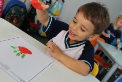 Maternal: Elaboração de cartão de aniversário com carimbo da palma da mão e dedos.