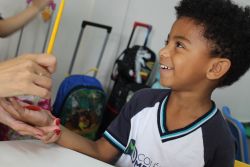 Mini Maternal: Confecção de cartão de aniversário com desenho com tinta guache.