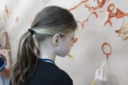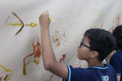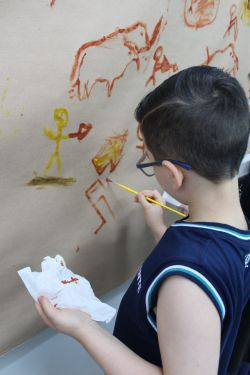Há milhões de anos, os povos antigos já se manifestavam através da arte, antes mesmo do surgimento da escrita. Com a arte rupestre foi possível entender as transformações e permanências nas nas trajetórias dos grupos humanos. As pinturas nas cavernas costumavam apresentar características especificas que retratavam animais silvestres, danças, rituais religiosos e figuras humanas. Identificar as relações entre os indivíduos e a natureza nos faz compreender melhor as primeiras comunidades da historia. Para contextualizar a matéria apreendida em sala de aula, os alunos do 4 ano criaram o mural rupestre com papel Kraft, para ilustrar as paredes das cavernas, e tintas feitas com elementos naturais como açafrão, pó de café, páprica e semente de urucum.