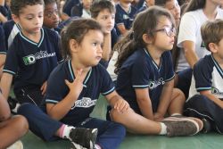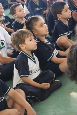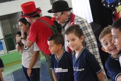 Como fechamento da semana de adaptação, convidamos todos os alunos da Educação Infantil e Ensino Fundamental Anos Iniciais para o espetáculo do Mágico Dyn Dyn e do Palhaço Meleca. Com um espetáculo inspirado nas borboletas e na preservação da natureza, Dyn Dyn encantou as crianças e professores.