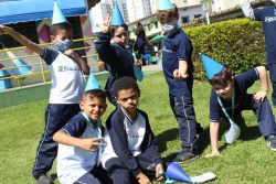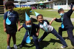 Para celebrar o Dia Mundial da Água, as turmas do Jardim II realizaram a atividade comemorativa do barquinho de papel no oceano. Com gelatinas coloridas na cor azul, representando os oceanos, e barcos de papel personalizados pelos alunos.