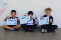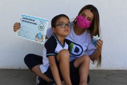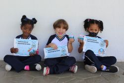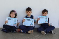 Após a explicação sobre a importância da preservação dos oceanos para o planeta terra, a turma recebeu certificados de protetores das águas.