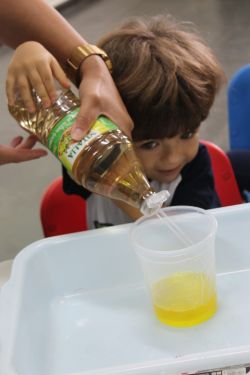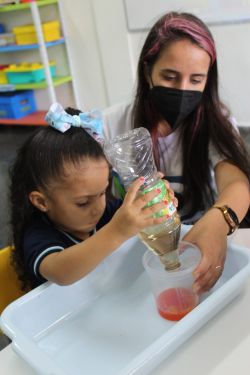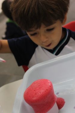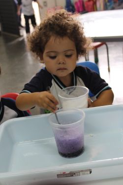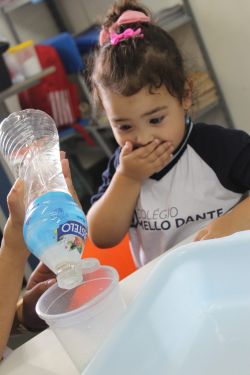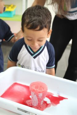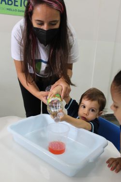 Com muita magia, alegria, risos, cores e arte, o circo é um ótimo lugar para visitar com toda a família. Para encantar os alunos com a magia do circo, a Professora Gabriela e os alunos do Mini Maternal realizaram o experimento da cartola do mágico com itens do cotidiano como vinagre, bicarbonato de sódio e corante alimentar.