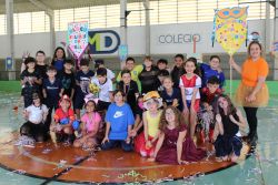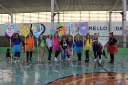 Para deixar o desfile dos bloquinhos ainda mais mágico, os alunos tinham como objetivo escolher o nome do bloco que representaria a sua turma e confeccionar estandartes criativos com materiais como: cola, glitter, lantejoula, tinta guache e papéis coloridos.