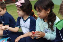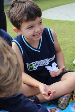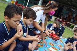 Com o projeto “O ciclo da vida das plantas”, a turminha conheceu os frutos que possuem muitas, poucas ou nenhuma semente, como o abacaxi. Após a conclusão da explicação em sala de aula, os alunos conheceram na prática o processo da germinação da semente observando o crescimento do grão de feijão, desde o grão até o nascimento da muda.
