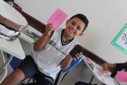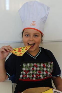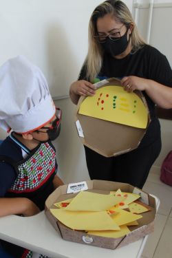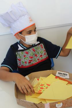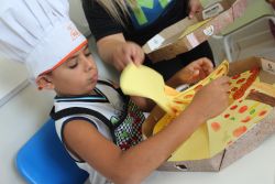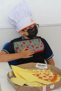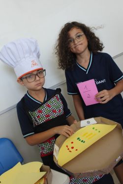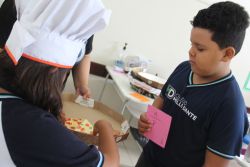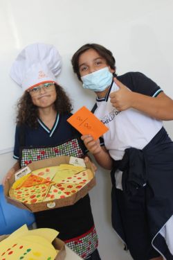 Com o objetivo de tornar o aprendizado teórico em uma atividade lúdica e divertida, a Professora Patrícia transformou a sala do 4º ano B na Pizzaria do Colégio Mello Dante. Com “pedaços” de pizza confeccionados pelos alunos, com papel cartão e desenhos ilustrativos, os pequenos pizzaiolos precisavam montar as pizzas referentes ao pedidos enviados pelos amigos em formato de frações.