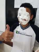 Com o intuito de promover uma divertida maneira de aprendizado, nossas turmas dos 8º anos do Ensino Fundamental II realizou o jogo “Torta na Cara” com a professora Daiana Alves. Com o tema “Classificação dos sujeitos”, os alunos realizam uma disputa de perguntas e respostas sobre o conteúdo abordado previamente em sala. Caso o participante errasse a pergunta recebia uma “tortada na cara” feita com Chantilly. Foi uma disputa bem legal”